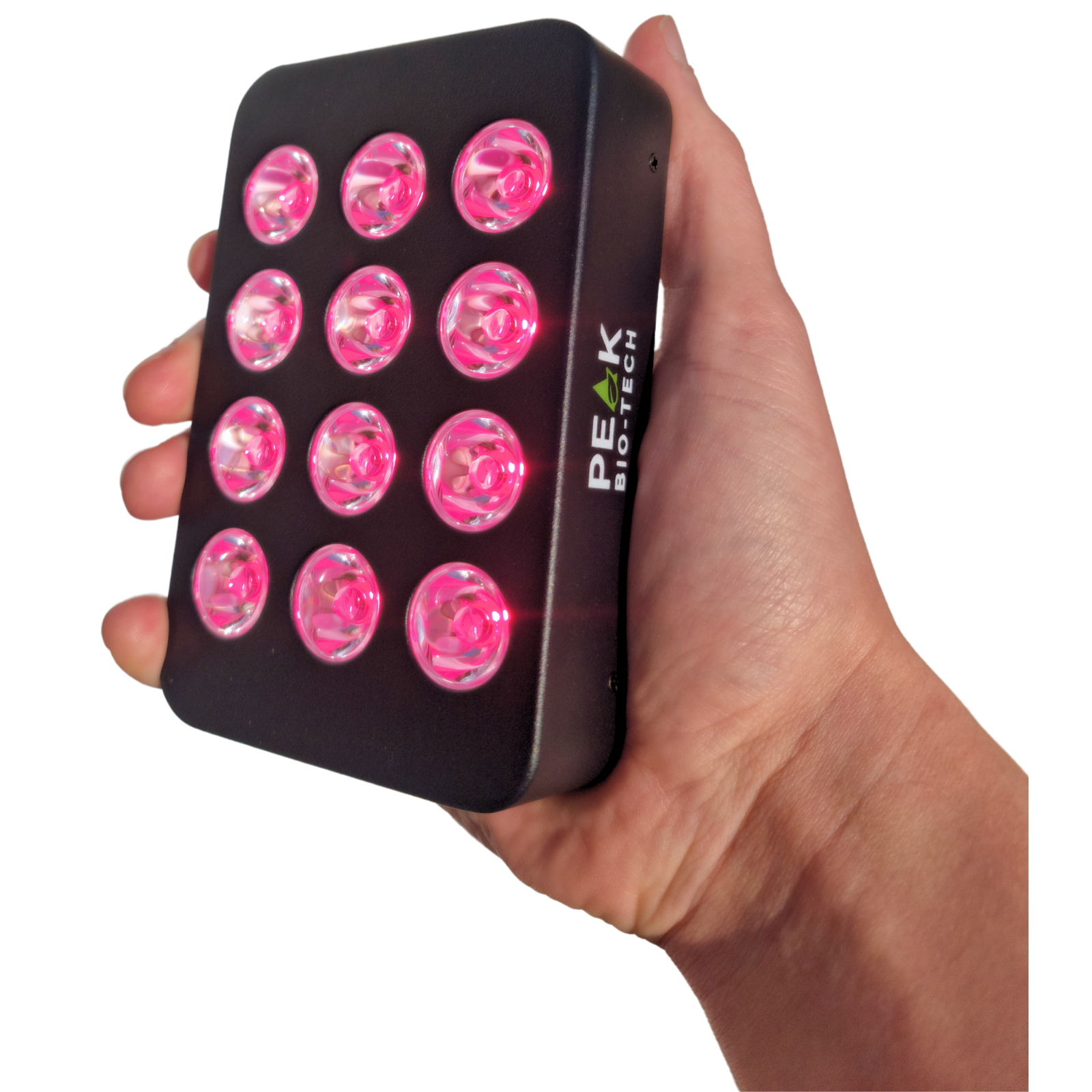 The Peak Radiance Go 60W handheld red light therapy panel is equipped with 12 high-precision 5W dual-chip LEDs, emitting 850nm and 660nm light at a balanced 30W per wavelength. The high precision LEDs provide clinical-grade performance to ensure consistent and effective red light therapy.