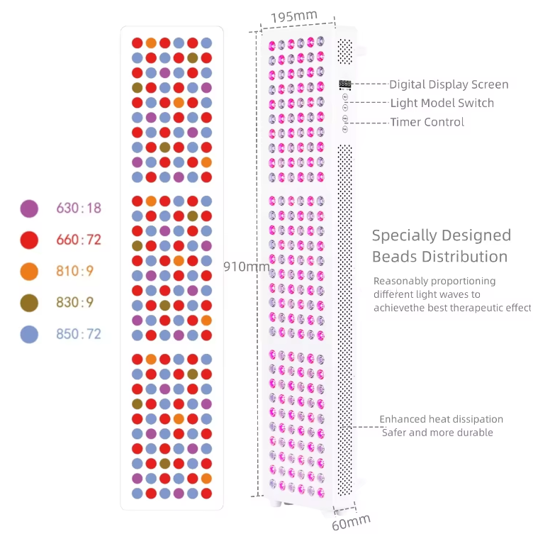 - 630nm and 660nm wavelengths are ideal for promoting cellular repair and enhancing mitochondrial function, improving energy production at the cellular level.